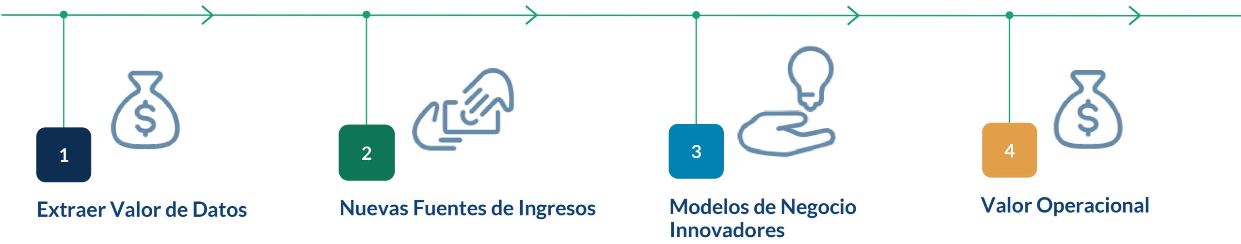 Permite extraer valor económico de la información, explorando nuevas formas de generar ingresos a través de la explotación inteligente de los datos de la empresa.